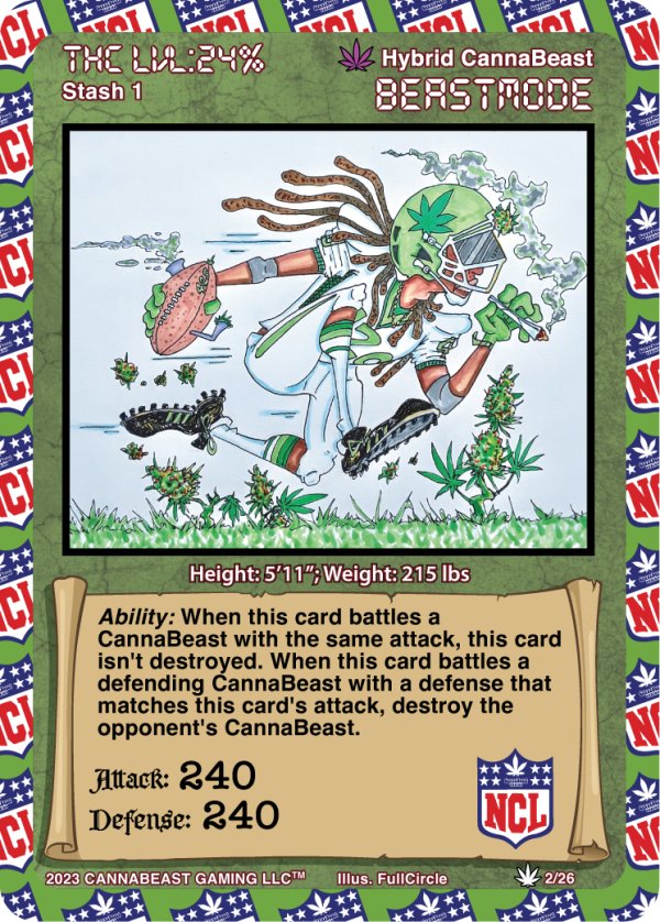 Ability: When this card battles a CannaBeast with the same attack, this card isn't destroyed. When this card battles defending CannaBeast with a defense that matches this card's attack, destroy the opponent's CannaBeast.